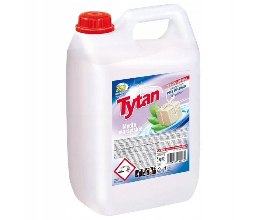 Uniwersalny płyn do mycia cytrynowy Tytan koncentrat 5 kg jest produktem tworzącym z mleczkami do czyszczenia rodzinę środków uniwersalnych. Skuteczność działania wynika z umiejętnie dobranych składników, które dokładnie czyszczą głęboko osadzony brud.